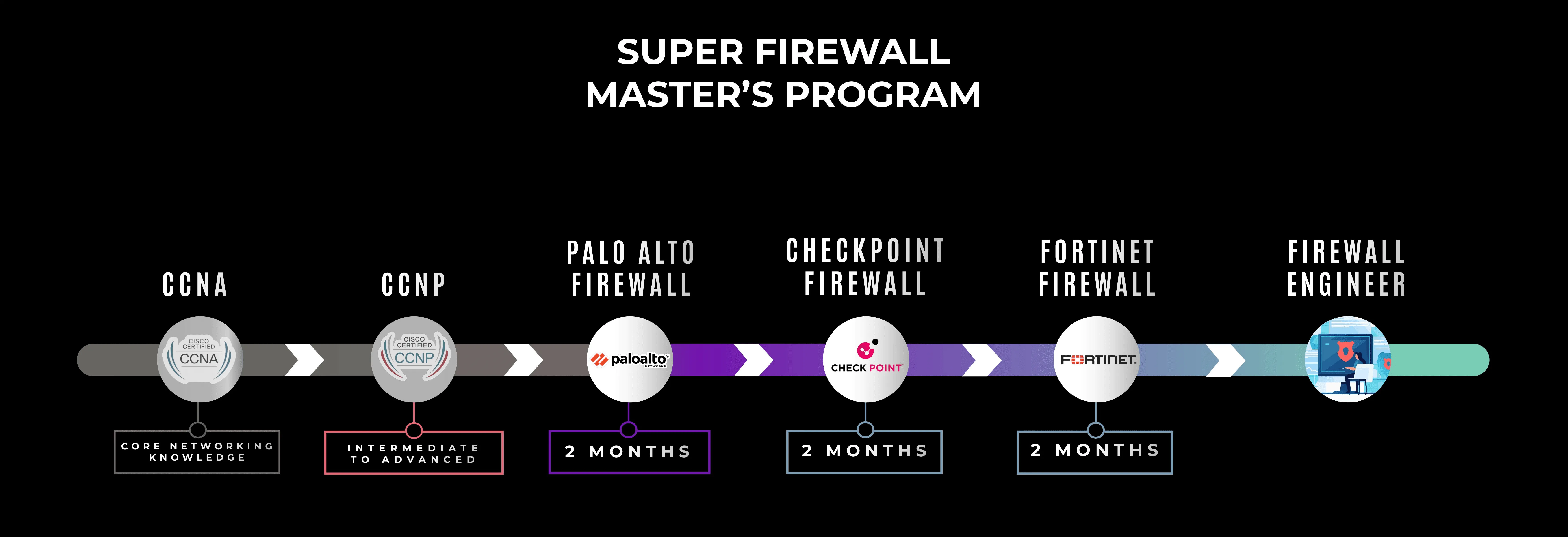 Start with the basics and master top firewalls — Palo Alto, Check Point, and FortiGate — through hands-on labs and expert guidance. No experience needed, just your passion to grow.